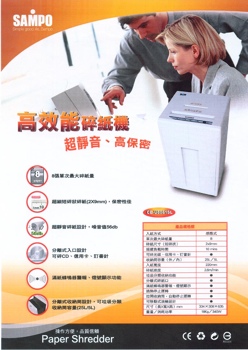 SAMPO聲寶 CB-U8081SL 碎紙機